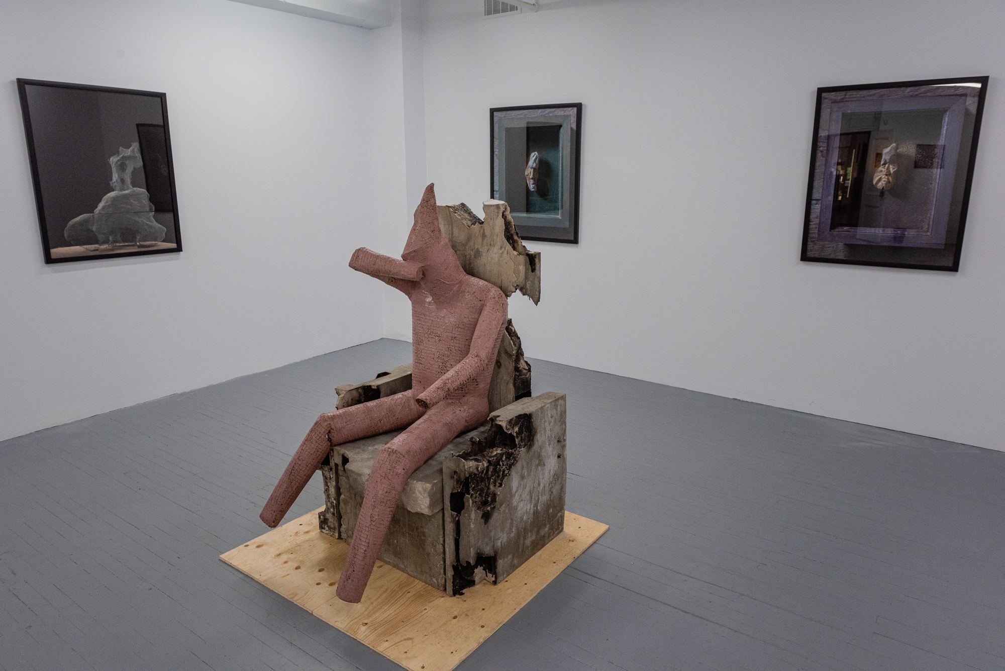Mon travail s’est donc partagé entre la recherche et l’expérimentation. D’une part donner vie à des archives élimées et d’autre part faire du nouveau pour entrer en relation et créer du sens. Oeuvrer à une relecture de certaines oeuvres de mon père à travers l’image photographique tout en me confrontant à la matière pour faire surgir des formes nouvelles et les offrir en support à ses créations. Tirées de mes fouilles dans ses archives sont des oeuvres qui sont présentées tel quel, rongées par le temps, mais dont le potentiel signifiant est ainsi décuplé. Afin de ne pas rester prisonnier de la virtualité de l’image j’ai tenté une incursion dans l’espace sculptural qui est celui de mon père, toujours en cherchant à y faire surgir ma voix propre.